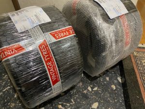 ロータスヨーロッパに装着されるそうです。今はレストア中とのことで、完成してタイヤを装着した折りには画像を送ってくれるようお願いしました。