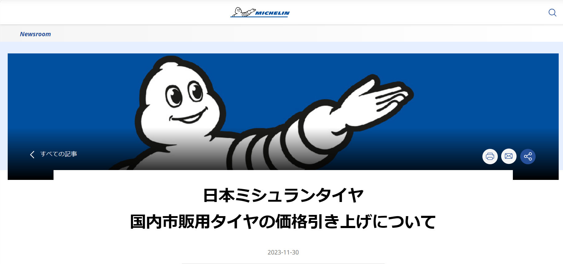 日本ミシュランタイヤ株式会社は、ミシュラン、BFグッドリッチ、ブランドの国内市販用タイヤのメーカー出荷価格を2024年2月1日(木)から改定します。