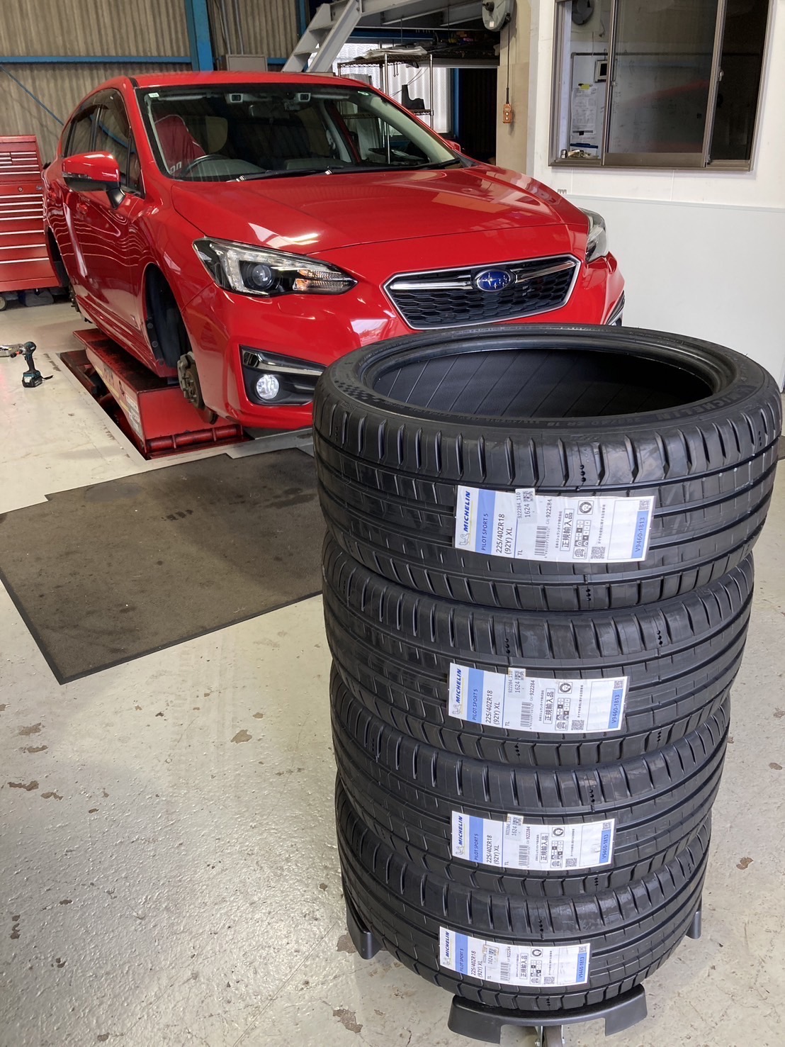 ミシュラン・パイロットスポーツ5 225/40ZR18 (92Y) を「村上タイヤ博多」で、スバル・インプレッサスポーツに装着しました。