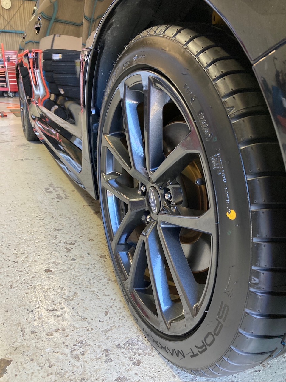 ダンロップ・SP Sport MAXX RT (新車純正装着タイヤ) 245/40R18 93W を「村上タイヤ博多」で、スバル・WRXに装着しました。