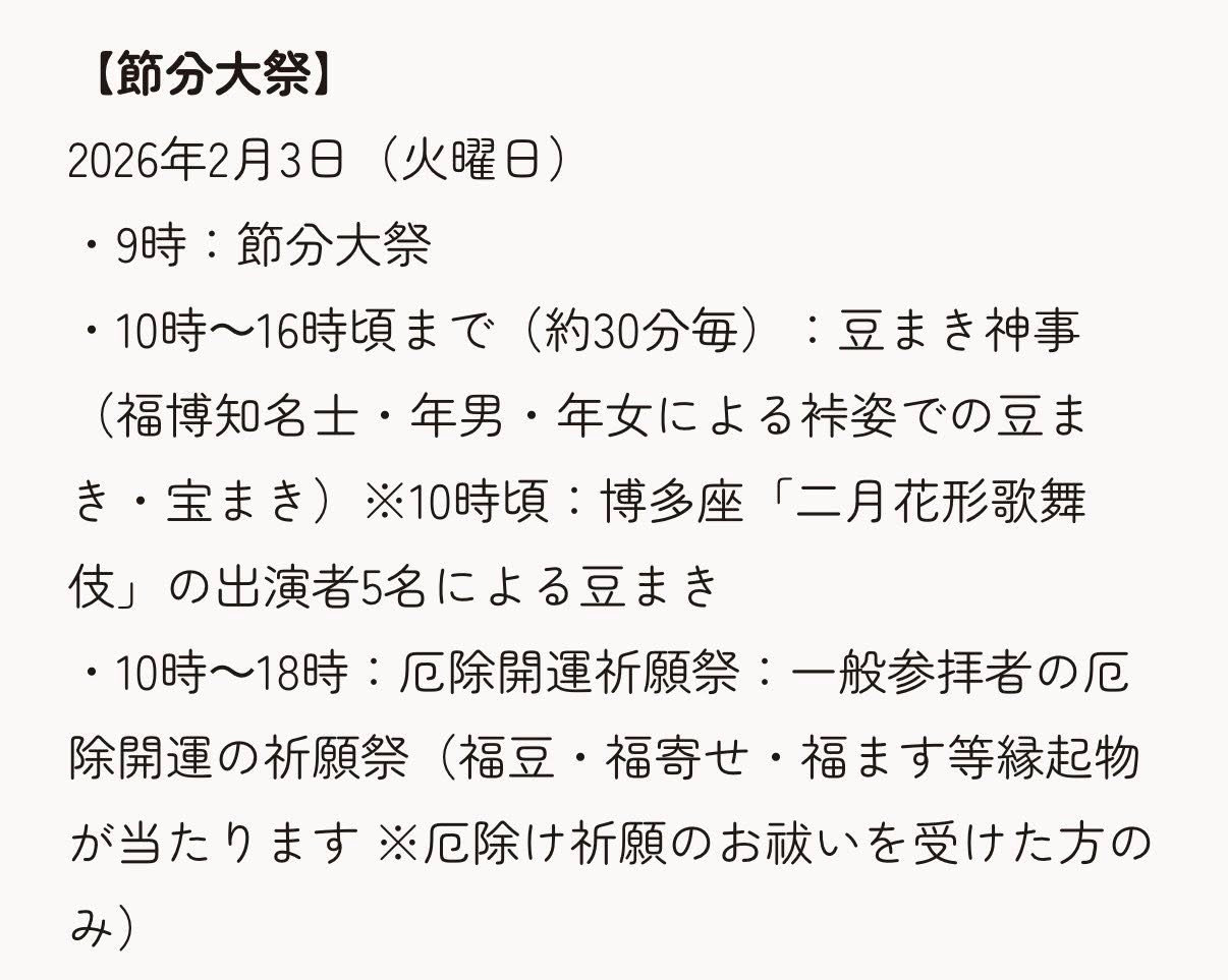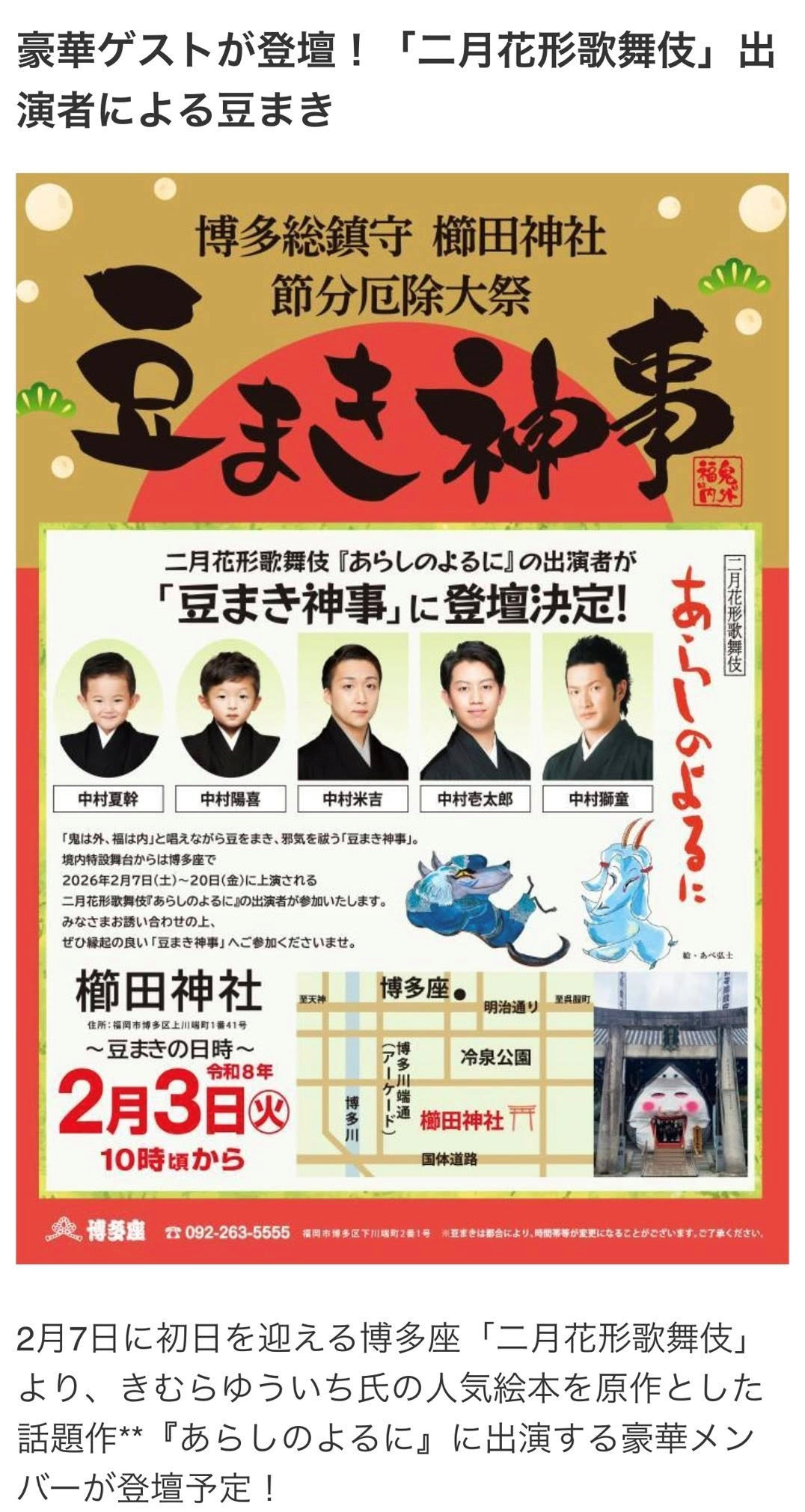 今日は「節分の日」です。福岡市博多区の櫛田神社では、恒例の豆まきが行われているようです。