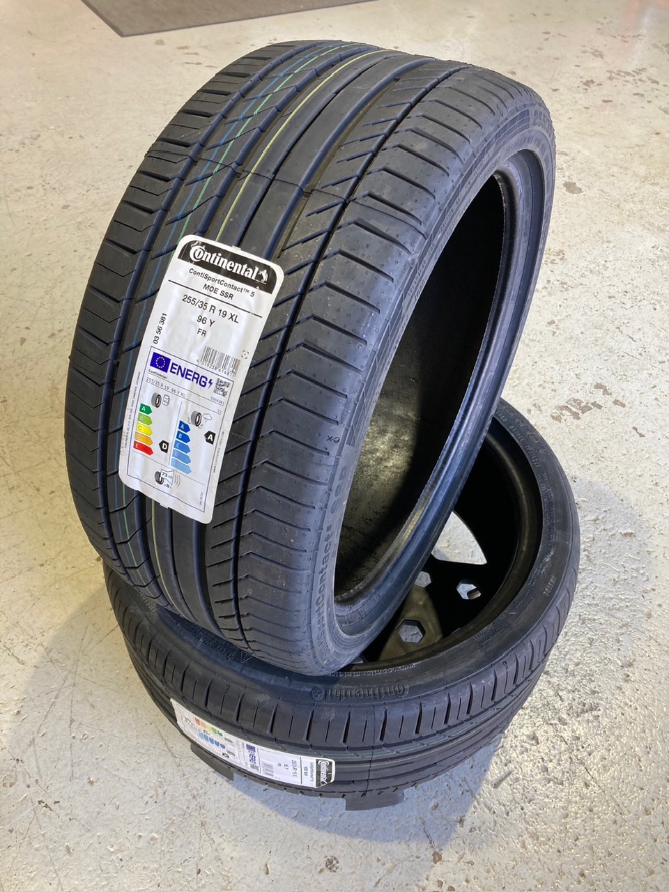 コンチ・CSC5 SSR(ランフラットタイヤ) メルセデス認証MOEマーク付 255/35R19 96Y 二本を「村上タイヤ博多」で、メルセデスC250に装着しました。