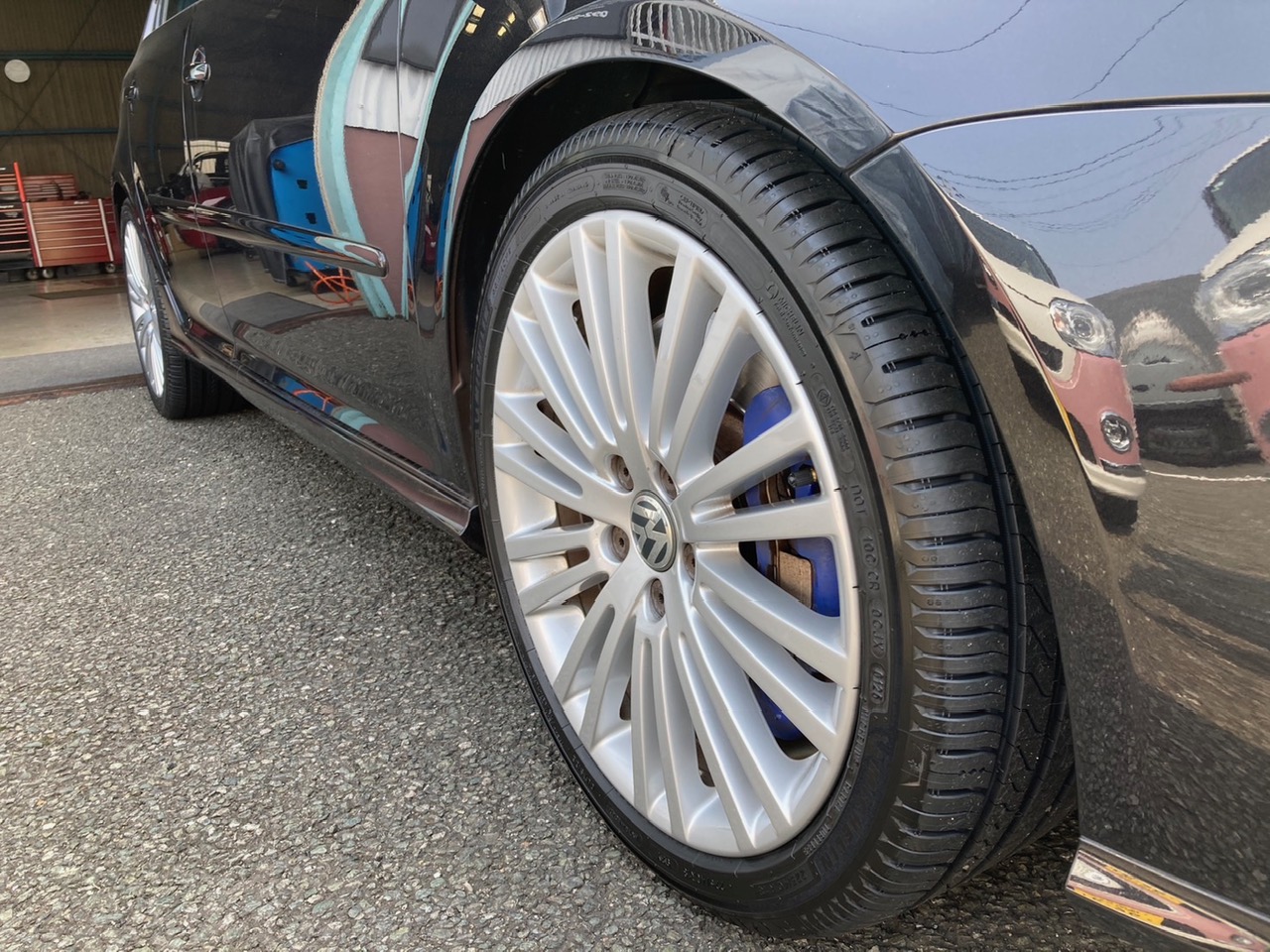 プライマシー5は、乗用車用タイヤの一般的な区分では『コンフォート系』に属します。ゆえに乗り心地の良さや、ノイズの少なさが特徴です。かつ充分な剛性を持つタイヤゆえ、(通常のVW・ゴルフと比較するパワーのある)最高出力241PSのR32に装着しても、全然問題ありません。