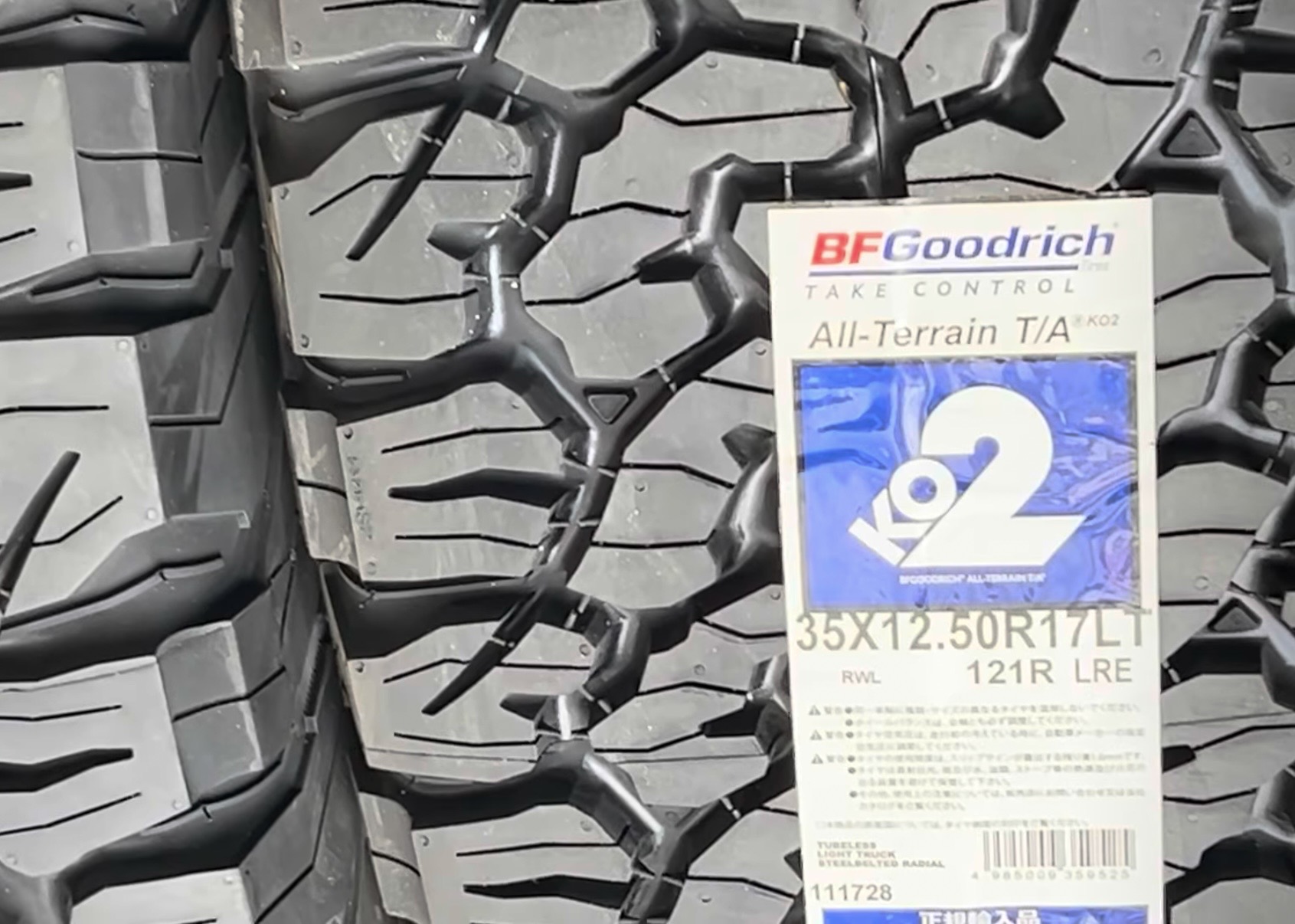 BF Goodrich・オールテレーン T/A KO2 35 x 12.50R17LT 121R LRE RWL を「村上タイヤ博多」で、Jeep Wrangler unlimited rubiconに装着しました。