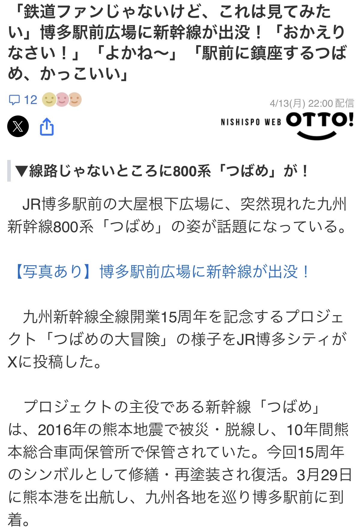 熊本地震で被災し、10年にわたって保管されていた九州新幹線「つばめ」の先頭車両を一般公開するイベントが今月10日に始まりました。