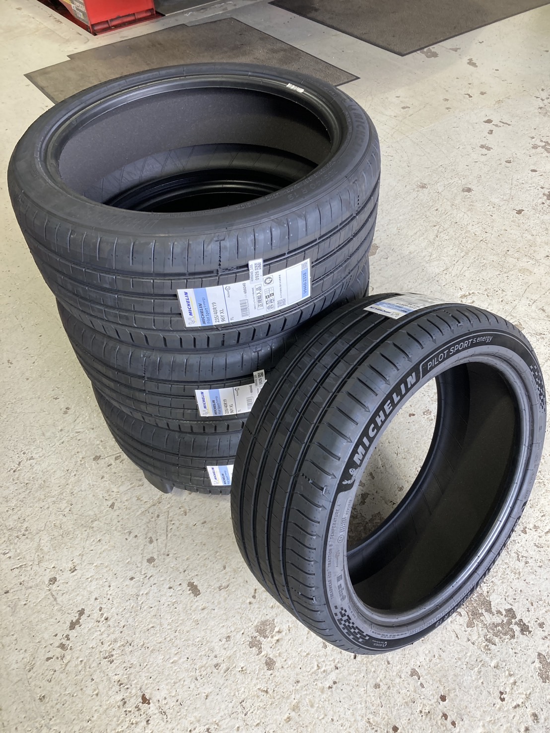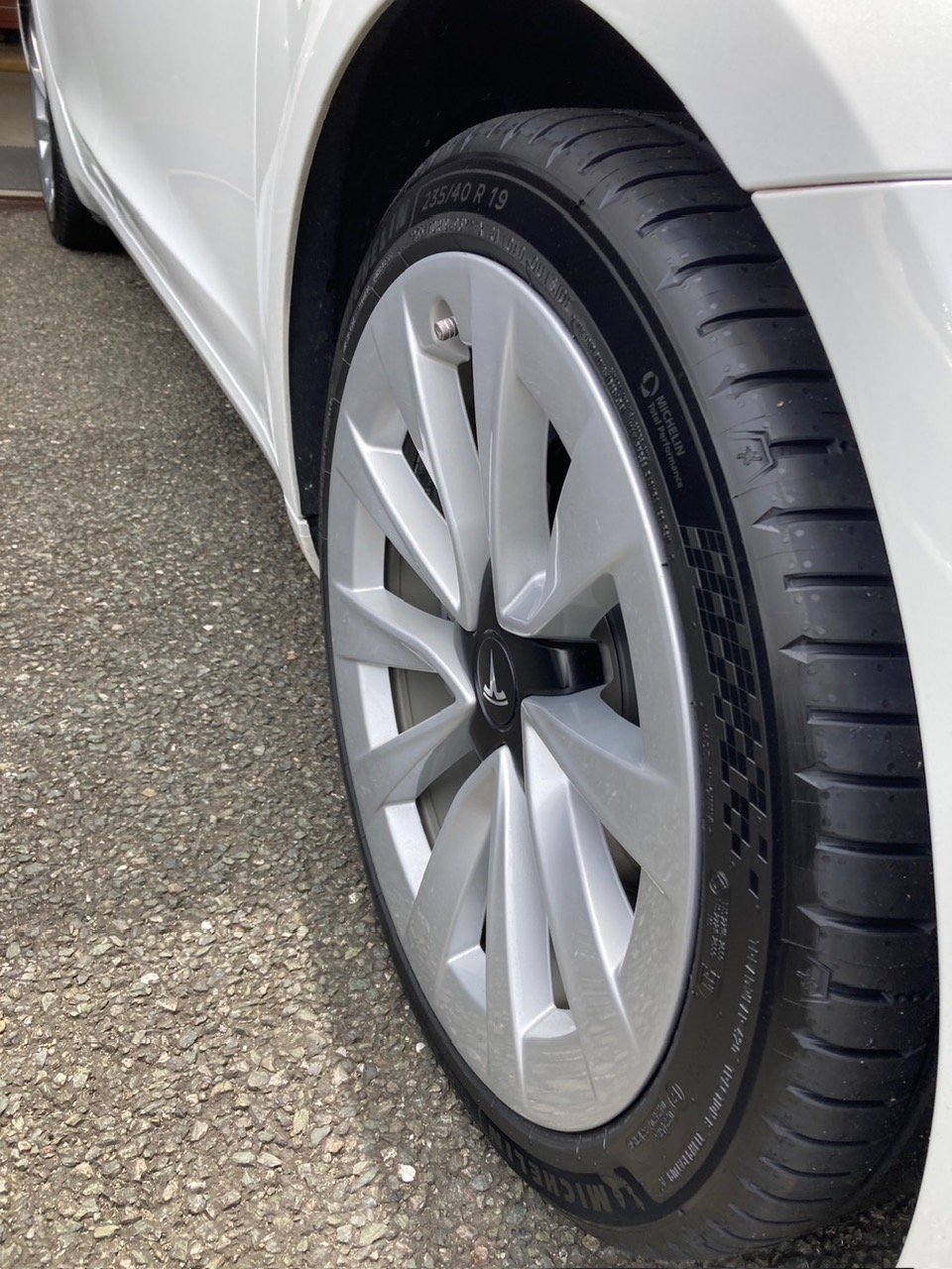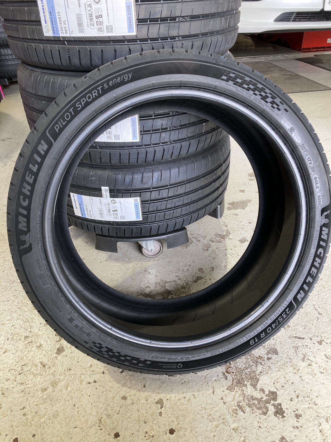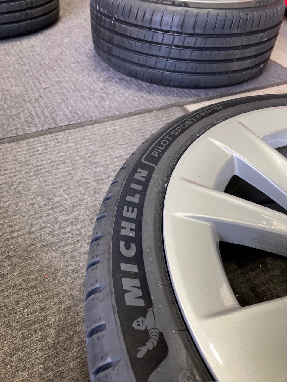今月発売開始になった ミシュラン・パイロットスポーツ5エナジー 235/45R19 96Y を「村上タイヤ博多」で、テスラに装着しました。