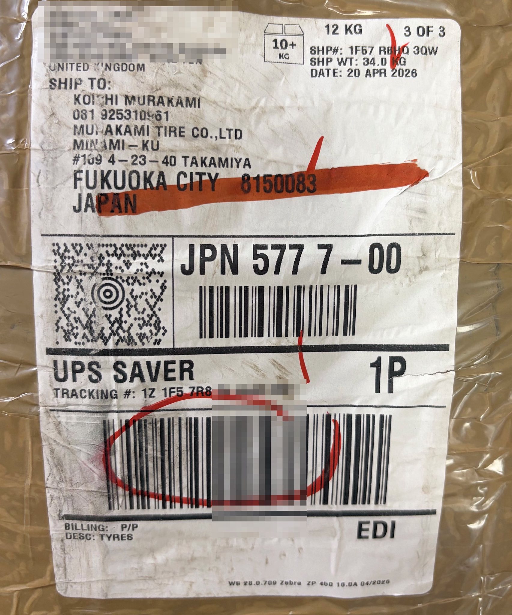 が、イギリスから到着。ご注文頂いた、遠方のお得意先企業に、佐川急便で発送しました。古いヨーロッパ車に装着されるそうです。