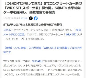 スバルが昨日公開した『WRX STI スポーツ♯』、最大のトピックは現行WRXの […]