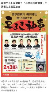 今日は「節分の日」です。福岡市博多区の櫛田神社では、恒例の豆まきが行われているよ […]